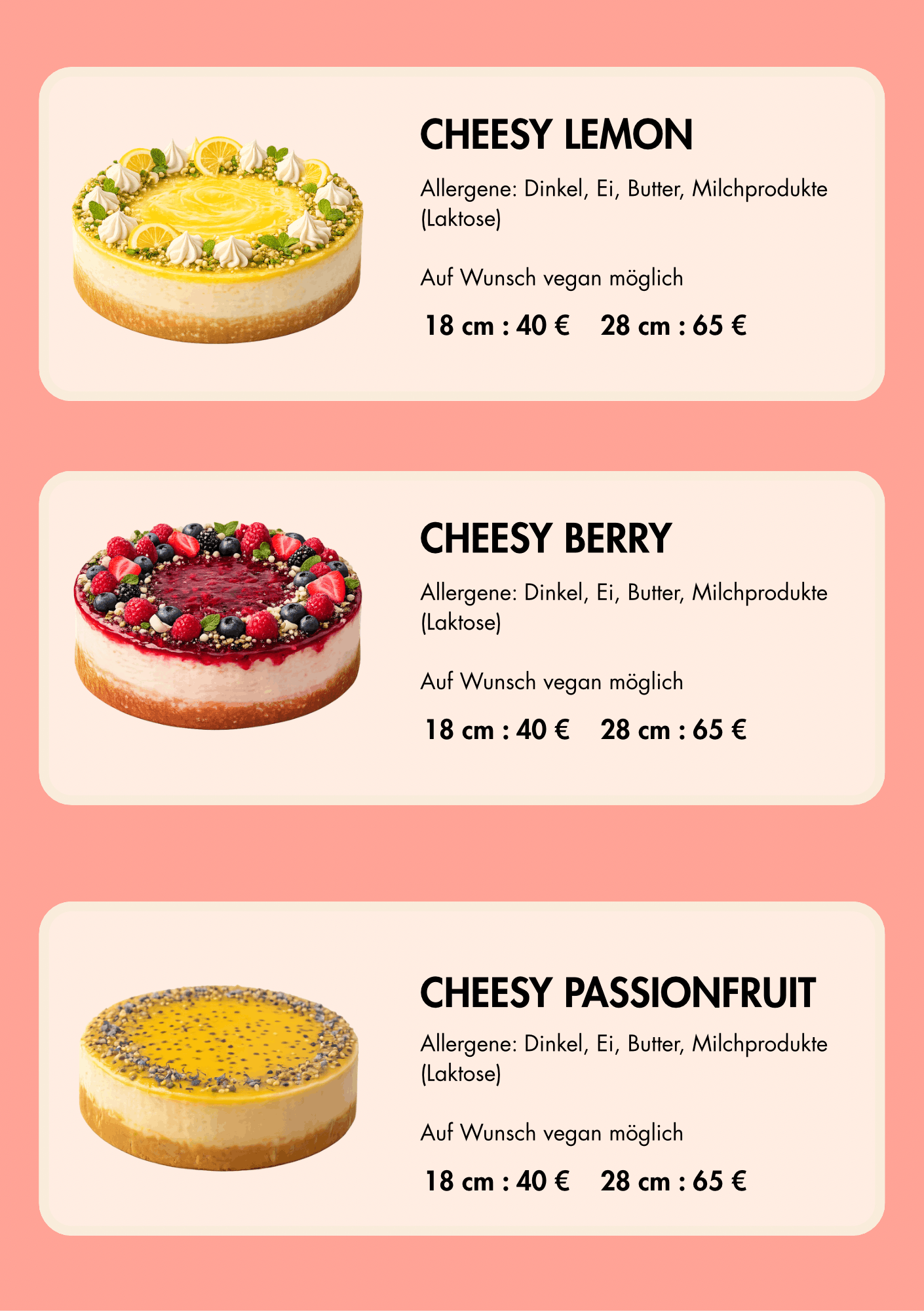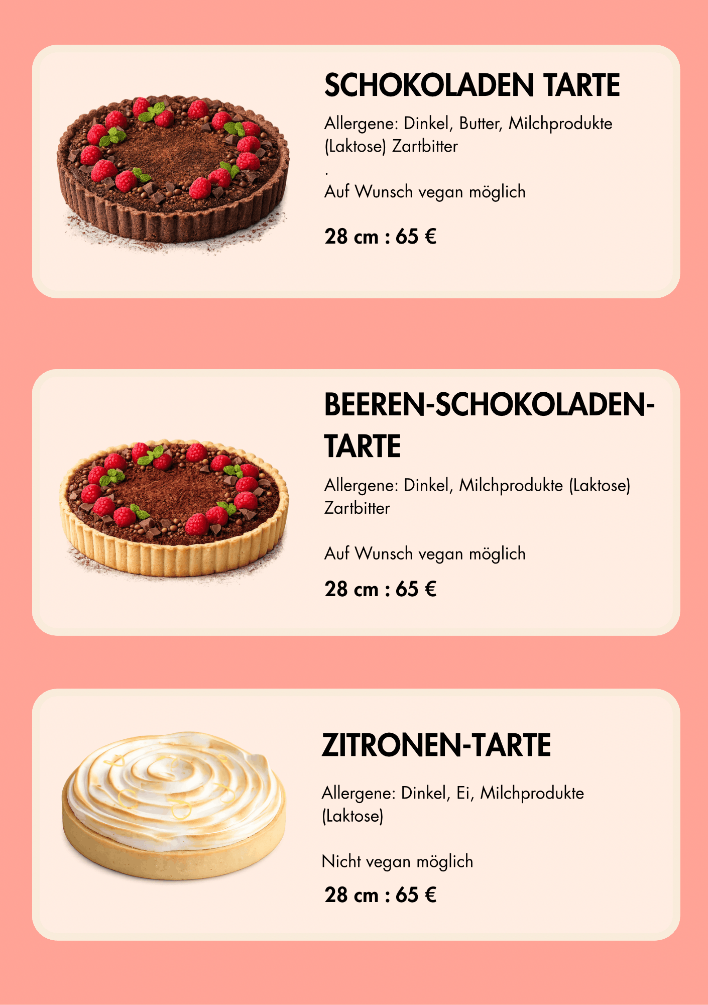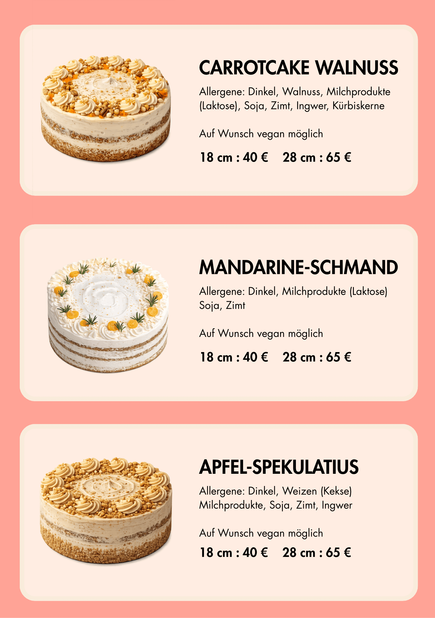 Unsere Kuchen und Torten entstehen mit viel Liebe und Leidenschaft, hochwertigen Zutaten und ausschließlich Dinkelmehl – ganz ohne Zusatz- oder Konservierungsstoffe. Jeder Kuchen und jede Torte wird von uns persönlich frisch gebacken und mit viel Sorgfalt und Liebe zum Detail für dich dekoriert.